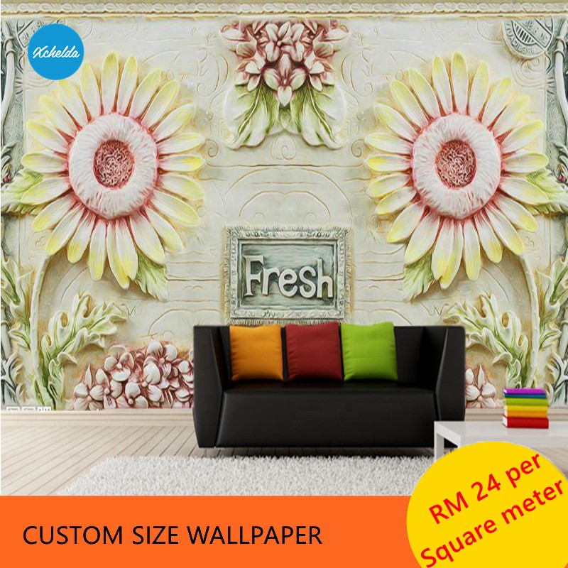 Custom Wallpaper Design Sunflower Photo Bedroom Pelekat Dinding Wall Murals
